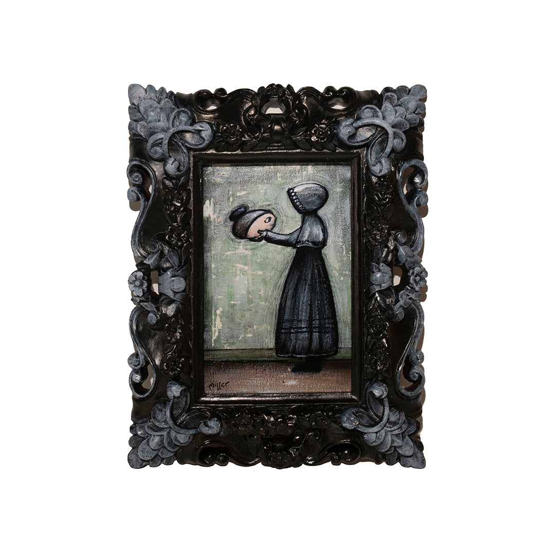 Art includes frame as shown, ready to hang. Acrylic paint on masonite wood panel with semi-gloss finish. Size listed is of the art size, not including frame. Sticker on back with name, size, and information.